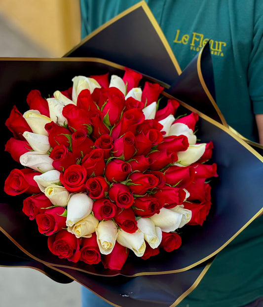 Buquet De 50 Rosas De Exportacion Mediano 🌹+ Corona Pequeña👑 + Peluche Pequeño🧸