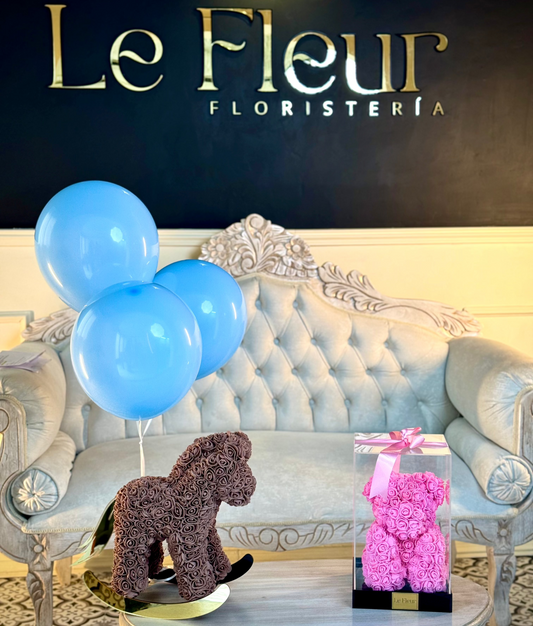 Caballo 40 Cm Cafe🐴 De Rosas , Base Acrilica y 2 Globos Hechos a Mano