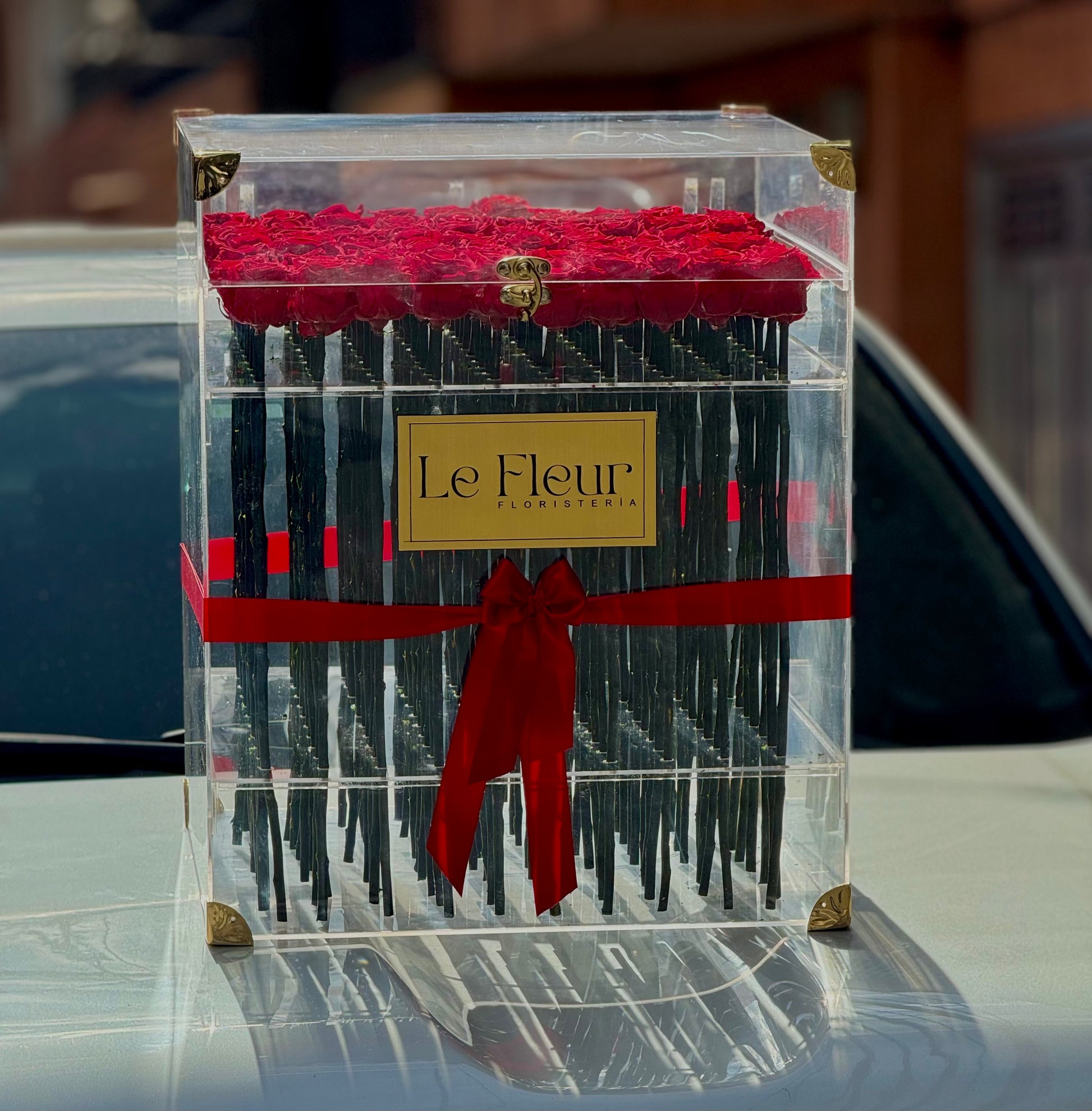 Nuestro hermoso baul acrilico con 100 rosas preservadas con una duración de mas de 5 años
