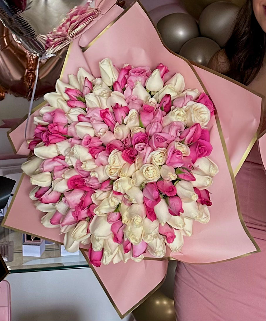 Buquet De 150 Rosas De Exportacion Blanco y Rosado Grande 🩷🤍