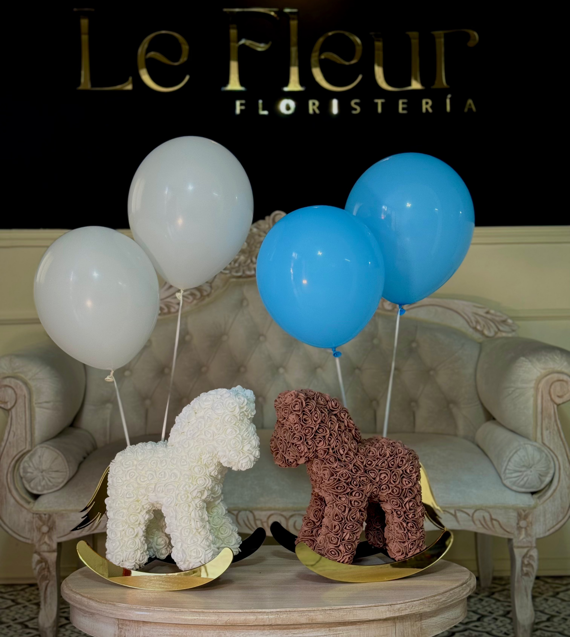 Caballo 40 Cm Blanco🐴 De Rosas , Base Acrilica y 2 Globos Hechos a Mano