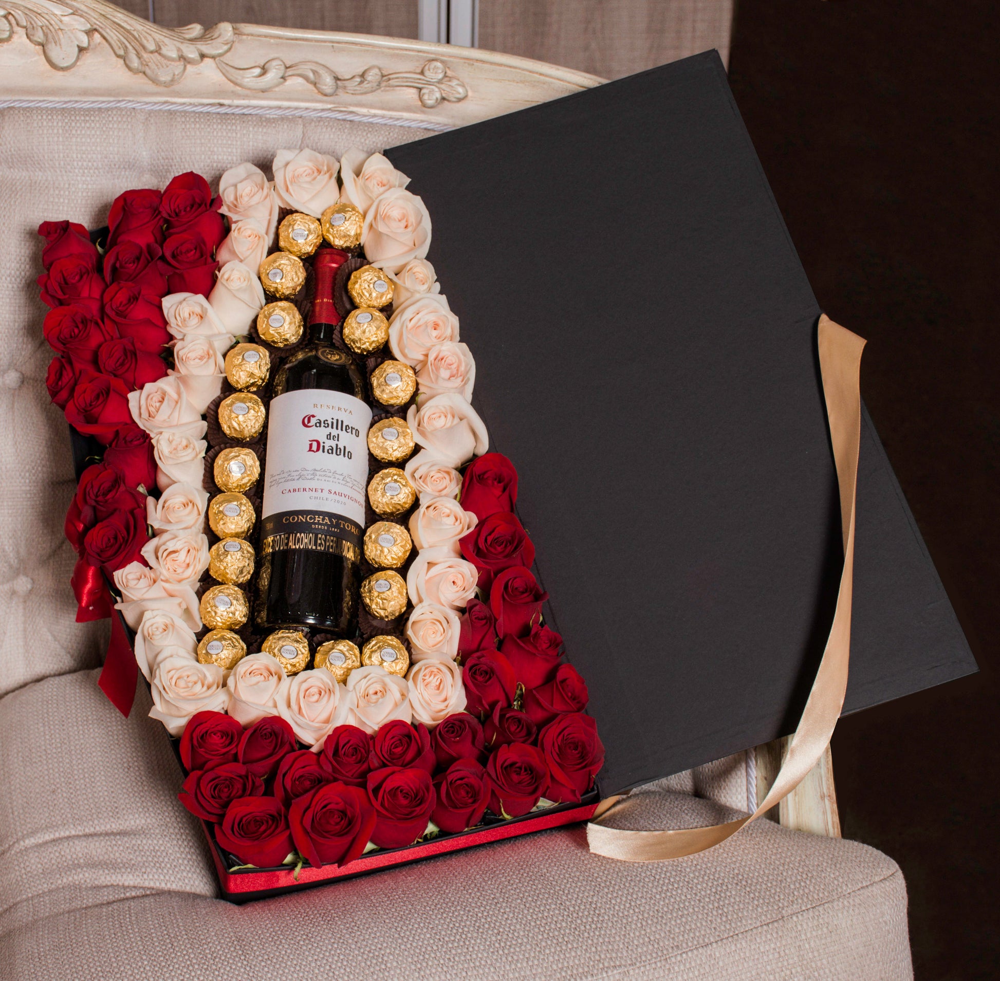 Caja 85 Rosas 🌹 + Botella Jp Chanet🍾+ 21 Ferrero 🍫
