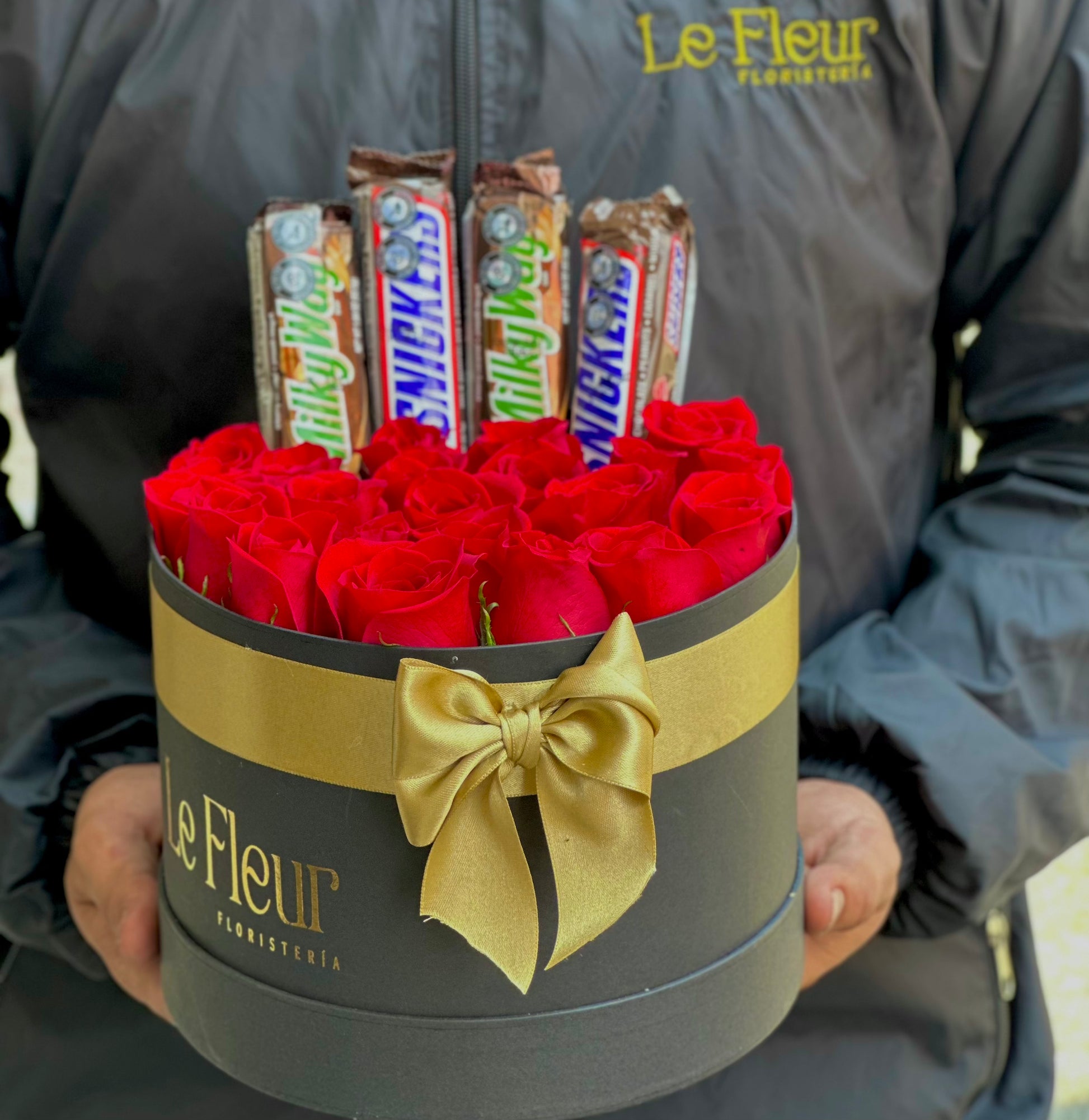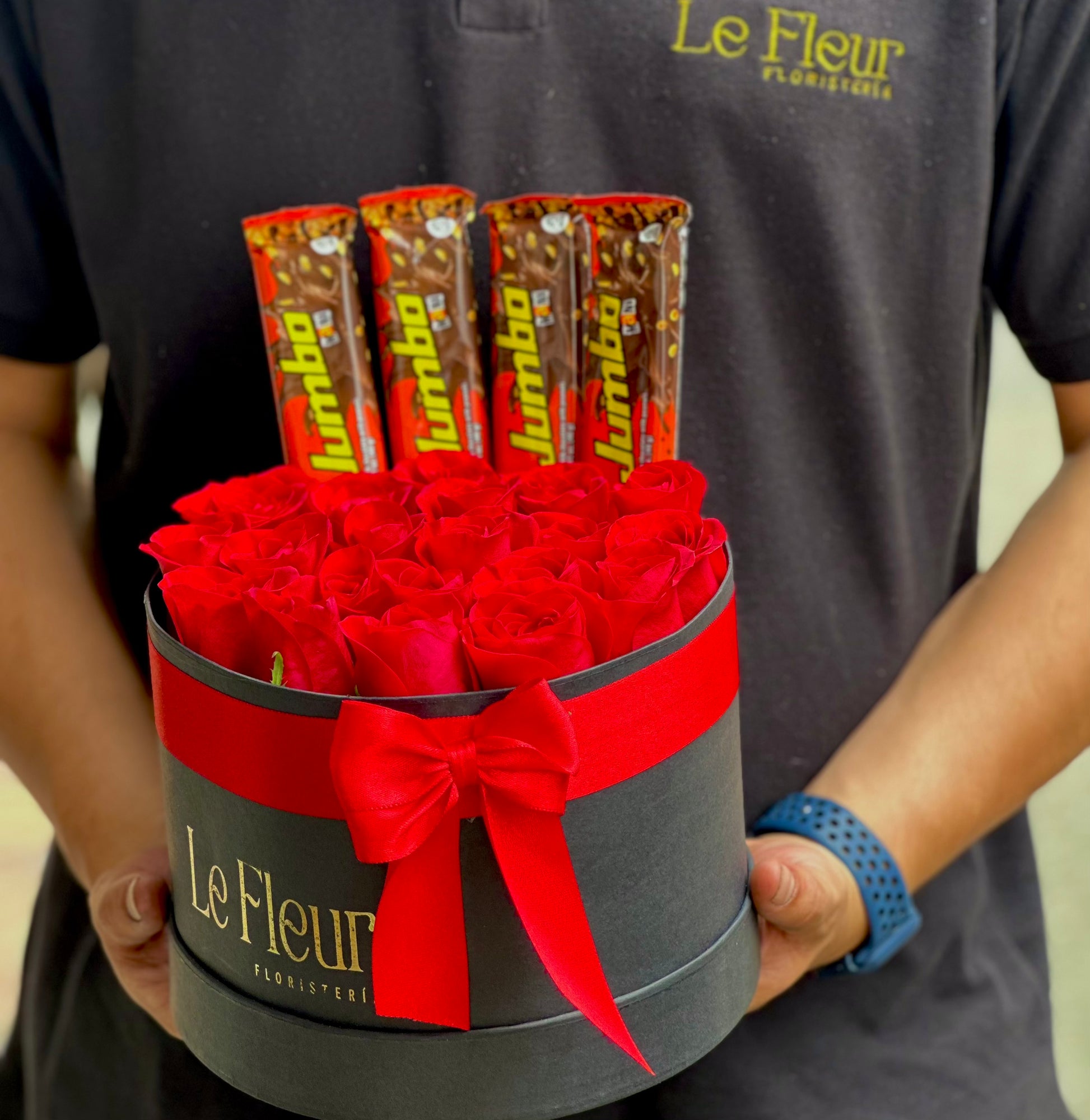 Cilindro 20 Rosas 🌹+ 4 Chocolates 🍫