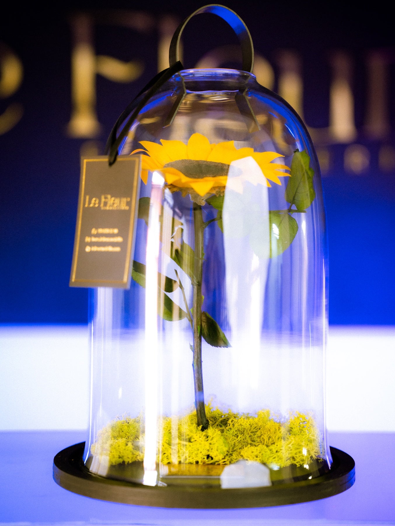 Girasol preservado XL premium con tallo 🌻 cuentan con base de madera y urna de vidrio con una duración de 5 años.