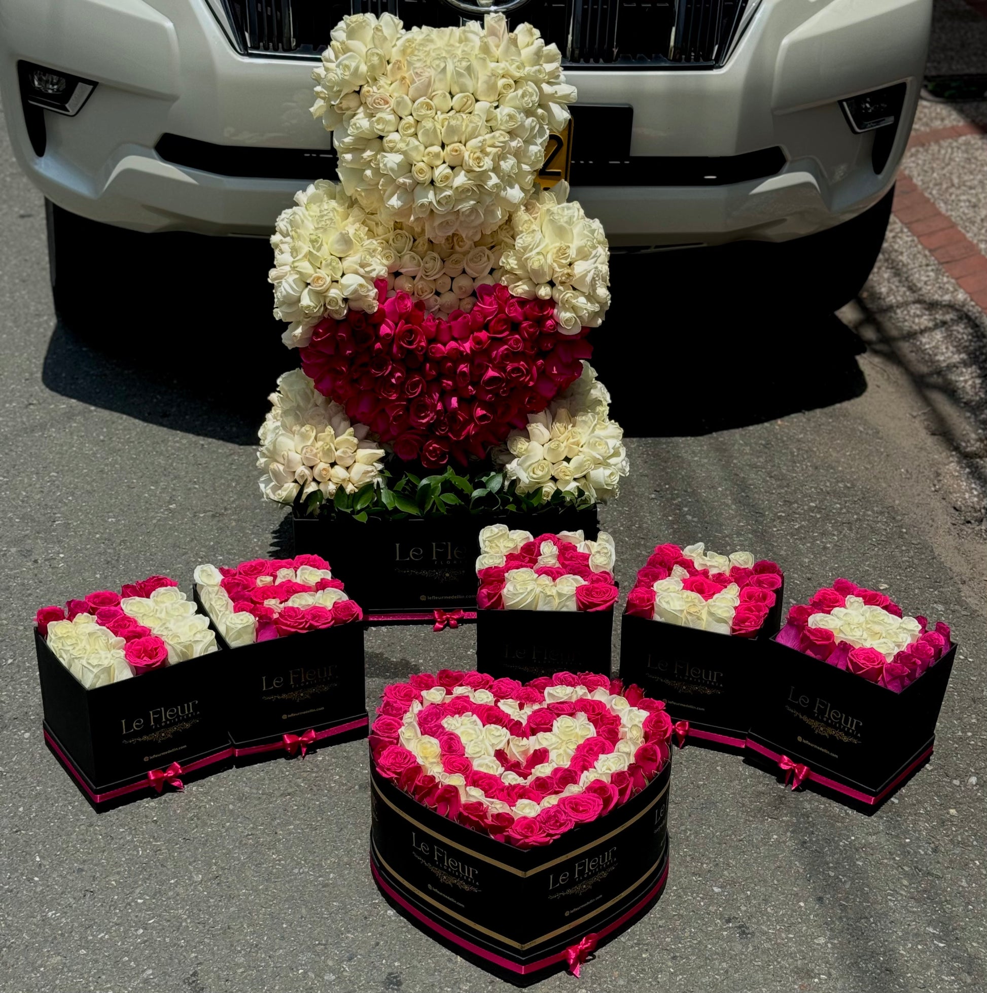 Oso Teddy 1.5 Metros 🧸Con 1.800 Rosas Hechos a Mano + Te Amo + Corazon XL 120 rosas+ tarjeta con el mensajito a tu gusto .