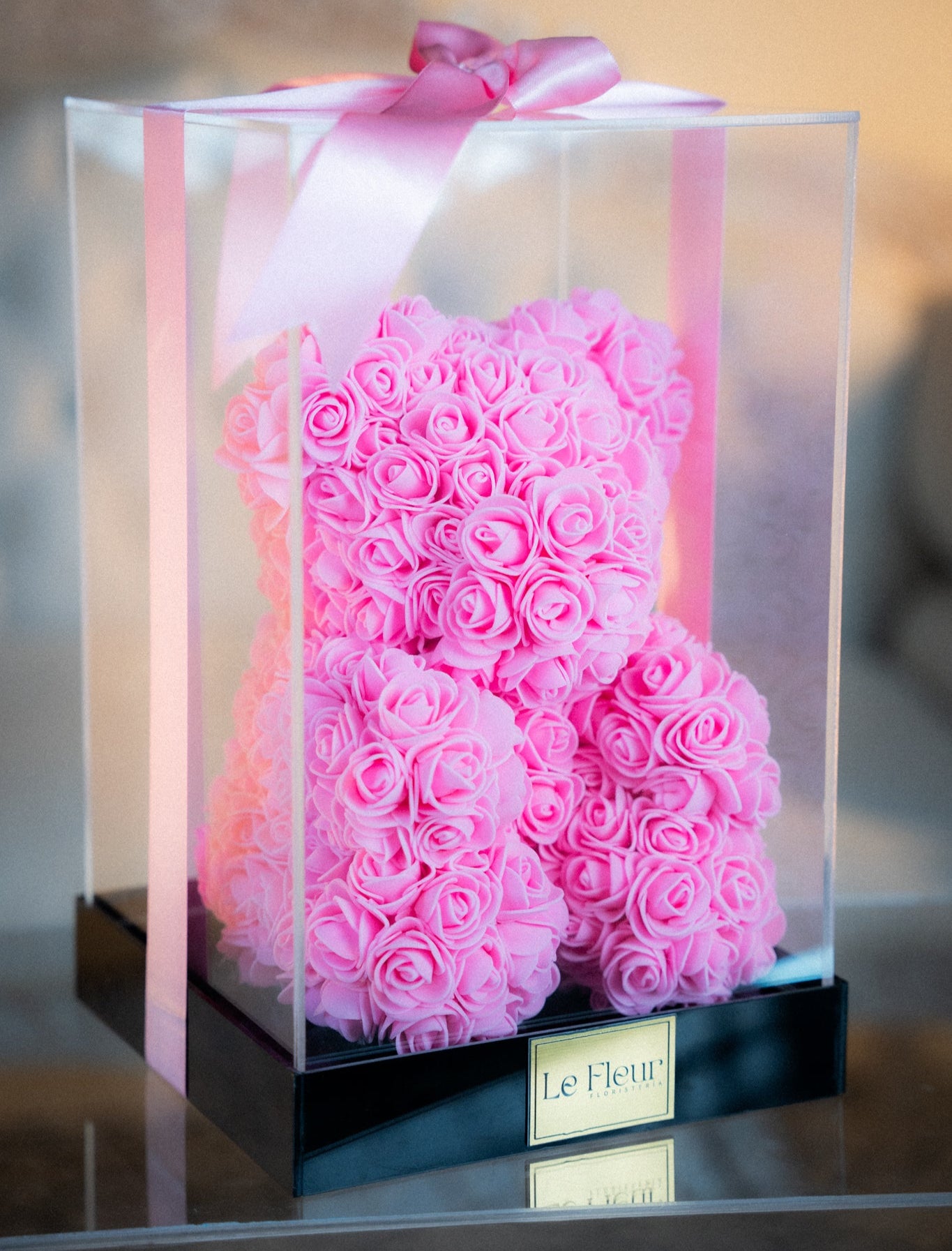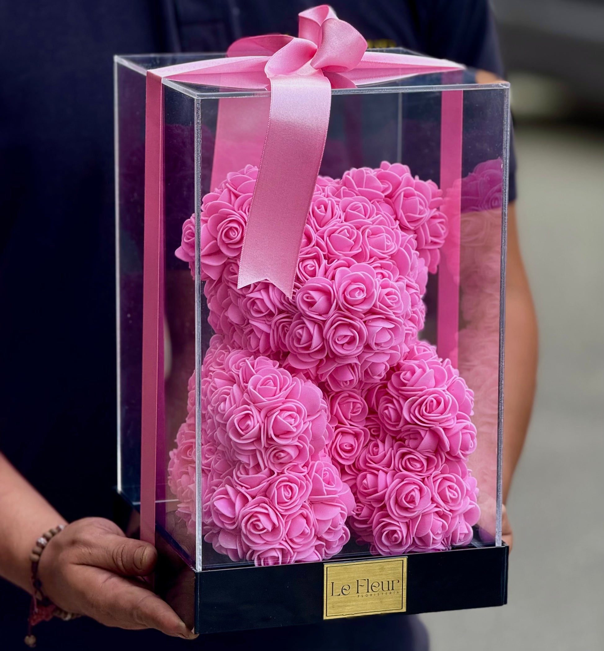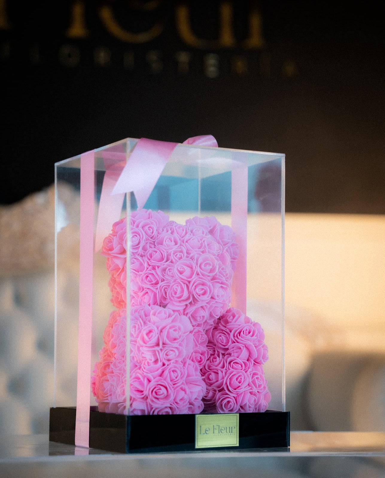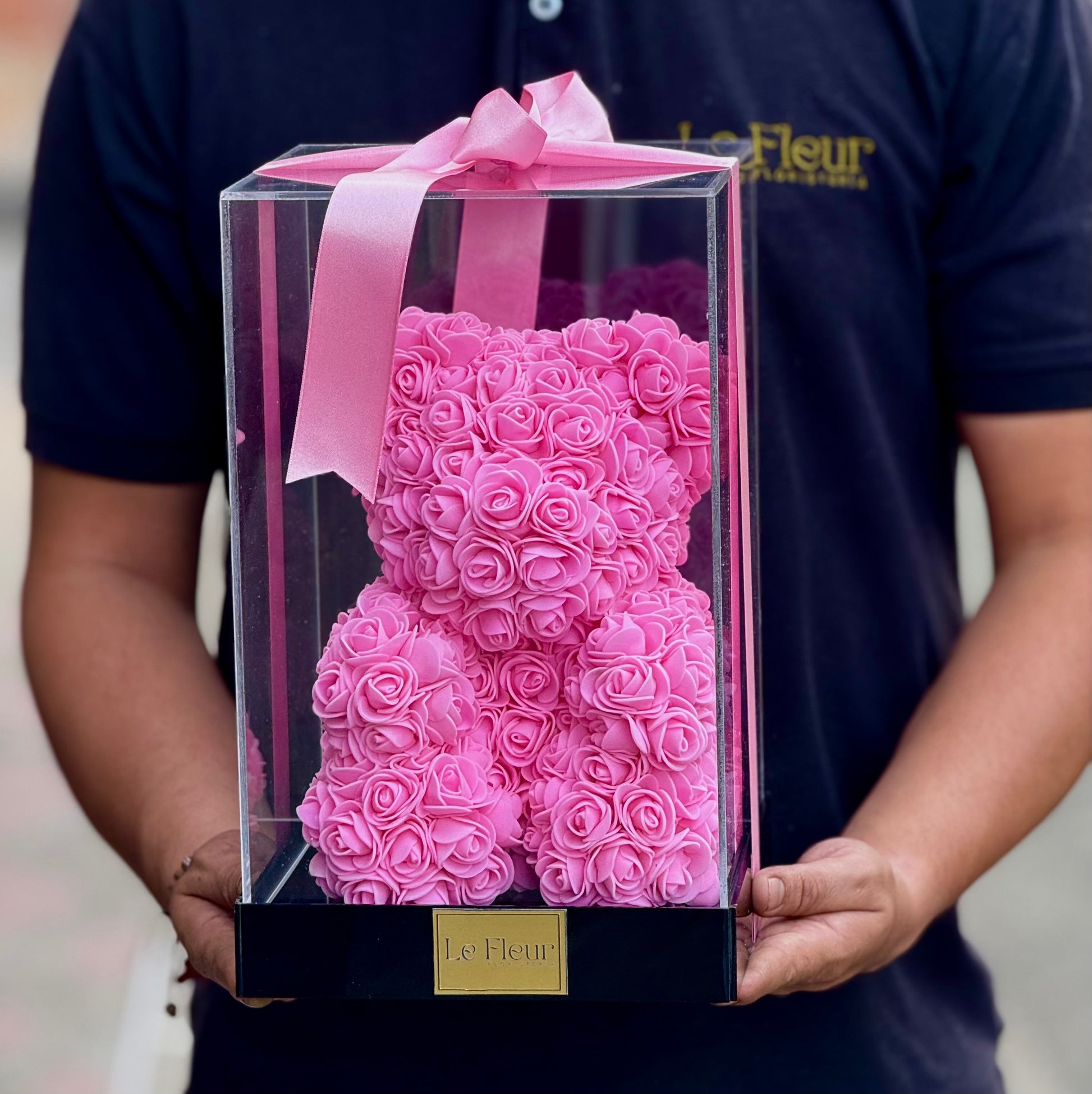Oso Teddy 25Cm 🧸 de rosas en foamy hechos a mano con caja de Acrilico + tarjeta con el mensajito a tu gusto .