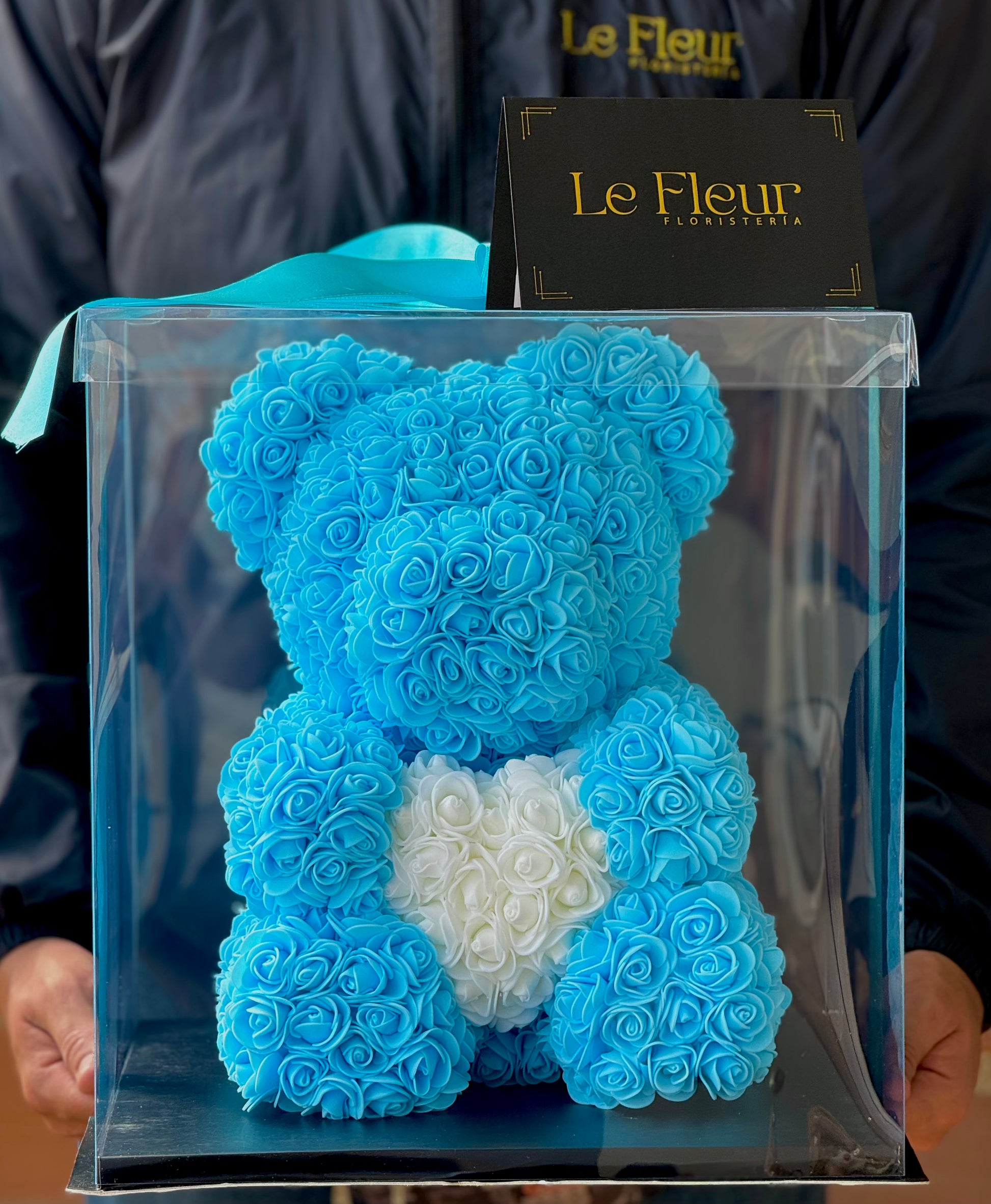 Oso Teddy Azul Claro 40 Cm 🧸 De Rosas Hechos a Mano