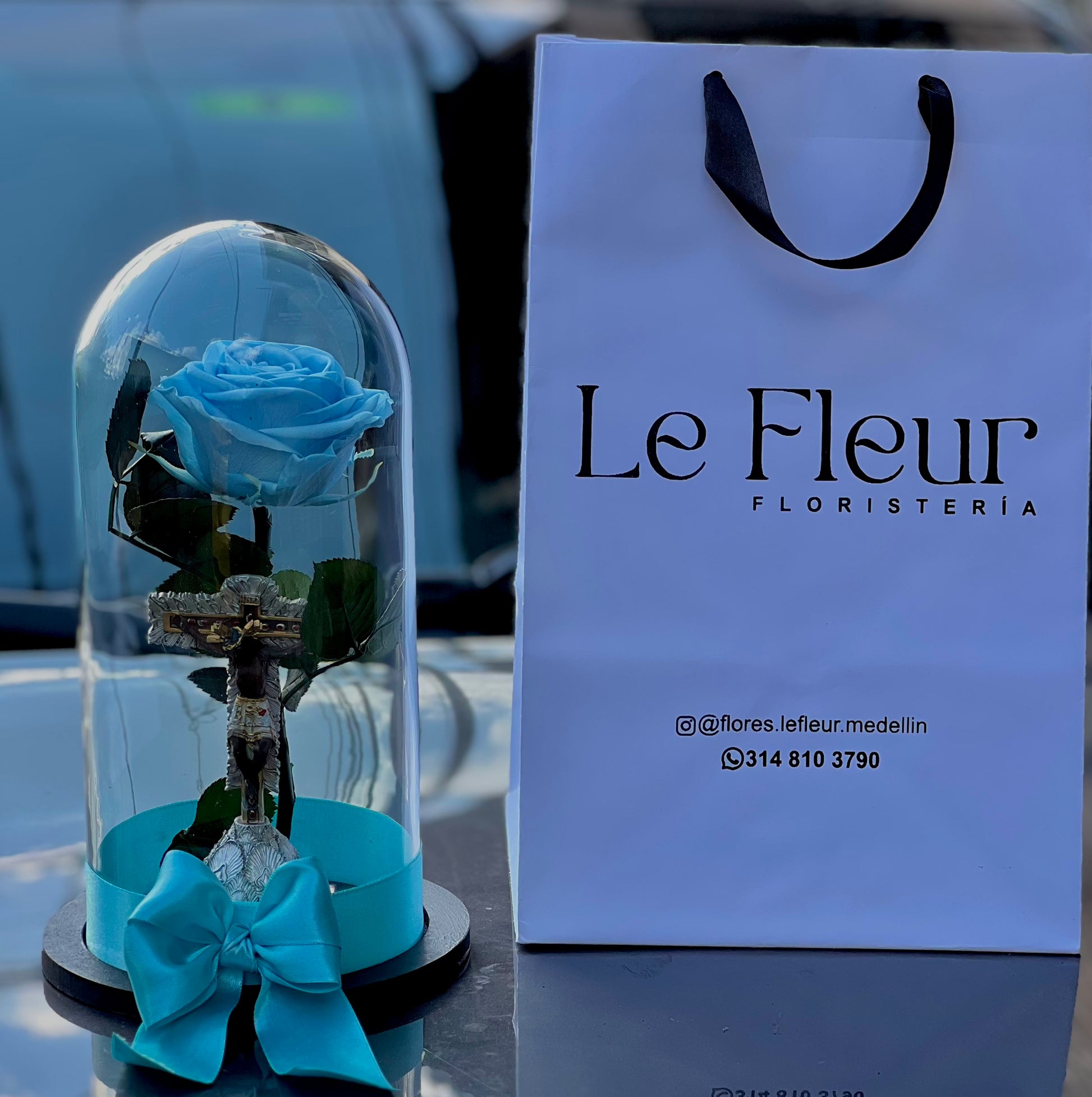 Rosa Preservada Azul Clarita 🌹+ Señor De Los Milagros De Buga A Color