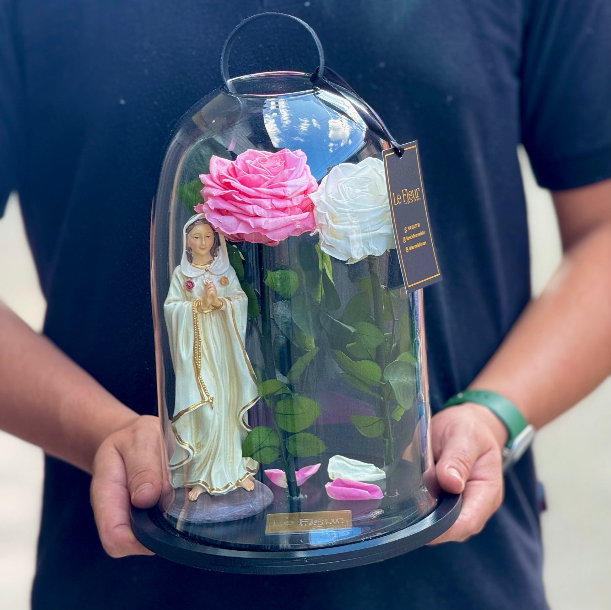 Rosa Preservada Doble XL Rosada y Blanca + Rosa Mistica Grande