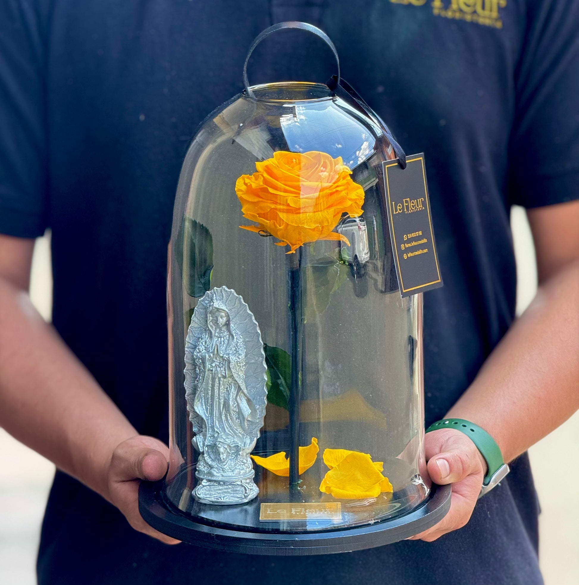 Rosa Preservada XL Amarilla + Guadalupe Plateada